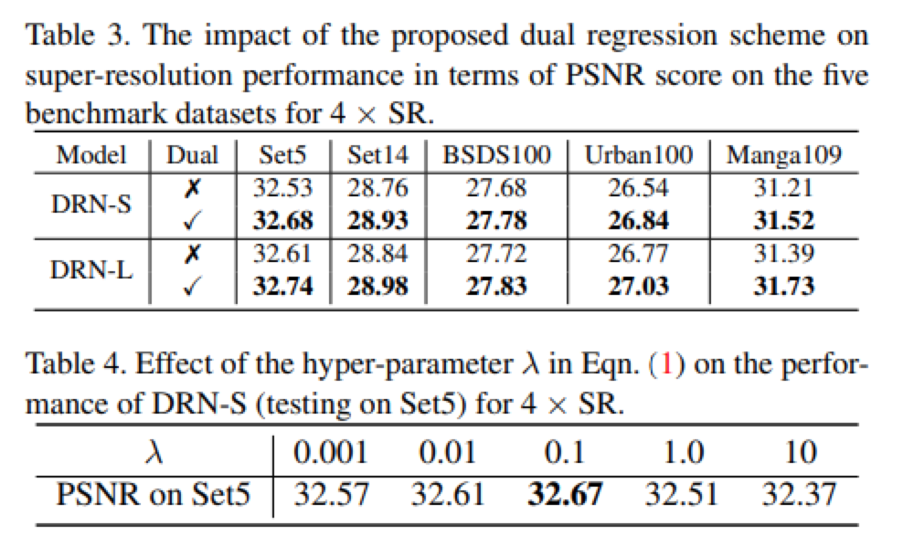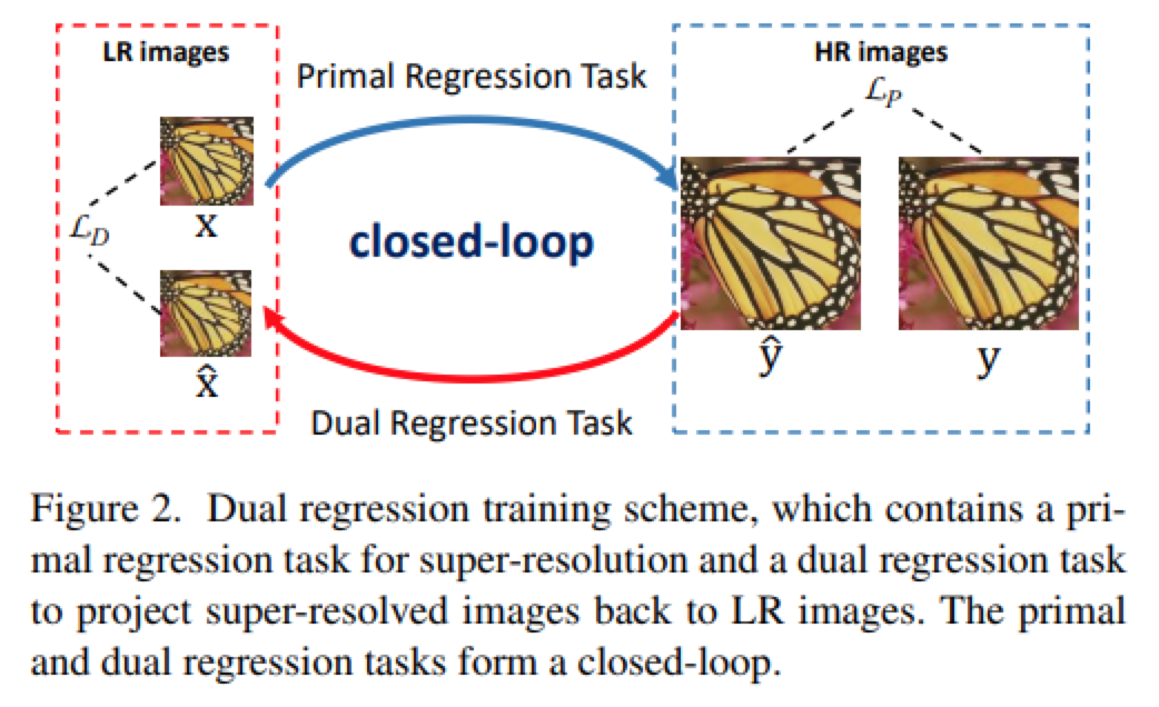 在本文中,作者提出了一种新的对偶回归方法,该方案形成了一个闭环用以增强SR性能。