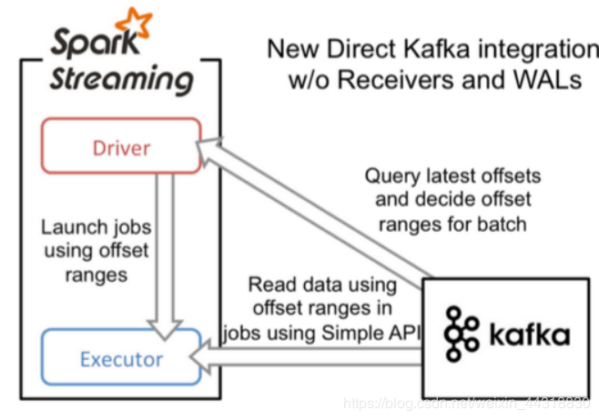 Direct方式调用Kafka低阶API(底层API),offset自己存储和维护,默认由Spark维护在checkpoint中,消除了与zk不一致的情况