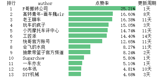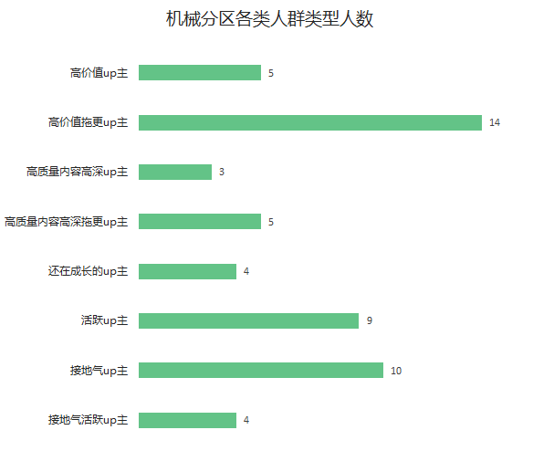 机械分区高价值up主只有5位,因为机械分区在科技区是个小分区,发布视频的up主仅有54位。