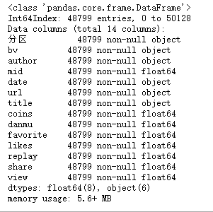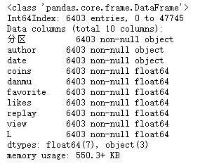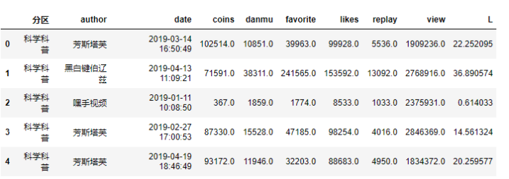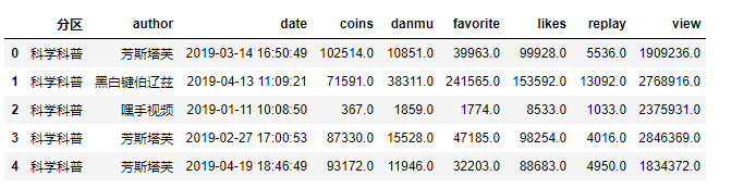 df = df[['分区', 'author','date','coins','danmu','favorite','likes','replay','share','view']]