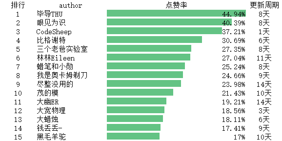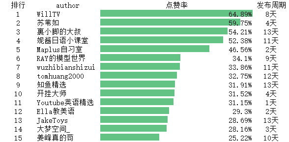 各分区up主排行top15