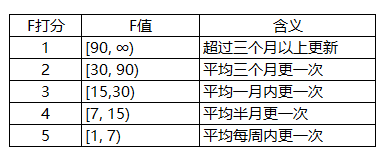 F值根据发布周期打分: