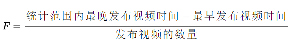 F值表示的是每个视频的平均发布周期,每个视频之间的发布周期越短,说明内容生产者创作视频的时间也就越短,创作时间太长,不是忠实粉丝的用户可能将其遗忘。
