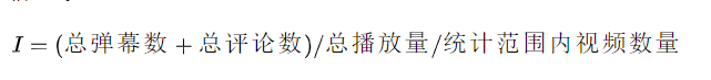 I值,I代表了up主视频的平均评论率,这个值越大,就说明其视频越能使用户有话题,当I值越大时,分值越大。