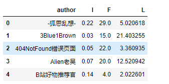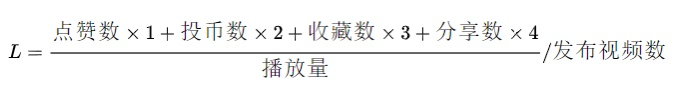 L值表示的是统计时间内发布视频的平均点赞率,越大表示视频质量越稳定,用户对up主的认可度也就越高。