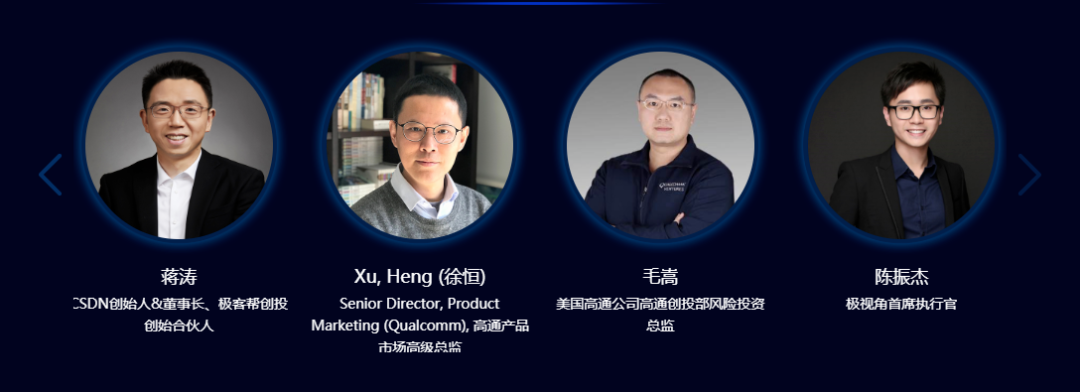 本次比赛的专家评委团阵容堪称豪华,优快云 创始人&董事长,极客帮创投创始合伙人蒋涛、Qualcomm产品市场高级总监徐恒、Qualcomm创投部风险投资总监毛嵩、极视角 CEO 陈振杰、中科创达 CTO 邹鹏程、OPPO多媒体技术部部长谭皓等业界专家将担任大赛评委,从众多参赛作品中选出最优方案。