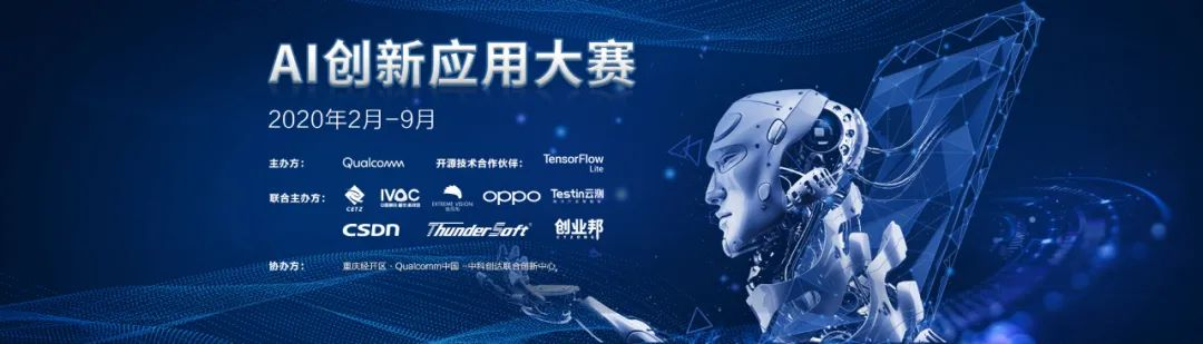 在这一背景下,由Qualcomm(高通公司)、中国智谷·重庆经开区、优快云、Testin云测、OPPO、极视角、中科创达、创业邦联合主办,重庆经开区·Qualcomm中国·中科创达联合创新中心协办,TensorFlow Lite 作为开源技术合作伙伴的行业内专业性质的“Qualcomm人工智能创新应用大赛”于今年2月正式启动。