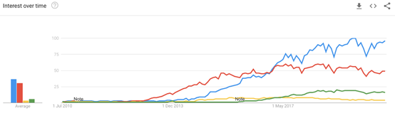 这也可以解释为什么上面显示的谷歌趋势图是向下的。对术语“JavaScript”的实际搜索呈下降趋势,但对JavaScript库的搜索呈上升趋势。