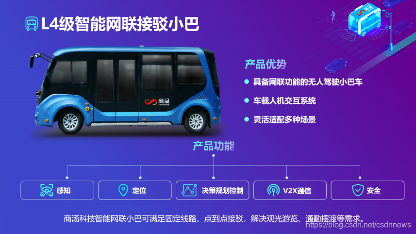 商汤科技在2020世界5G大会上推出全新智慧出行解决方案,包括L4级智能网联接驳小巴及智能路侧感知解决方案,旨在全面提升城市出行体验和服务质量。