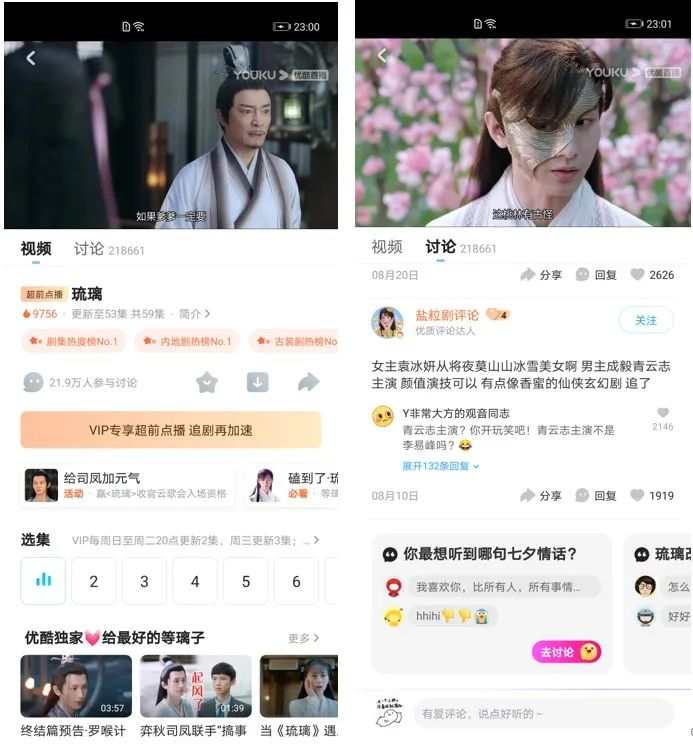 半屏即播放页可以更多内容展示的一个容器,会覆盖在原来的视频播放页部分。在横屏下半屏展示在右侧区域(如上图),在竖屏下,半屏在播放器下部分展示(如下图),所以对于半屏其实有三种状态展示,小屏下半屏,大屏横屏下半屏,大屏竖屏下半屏;