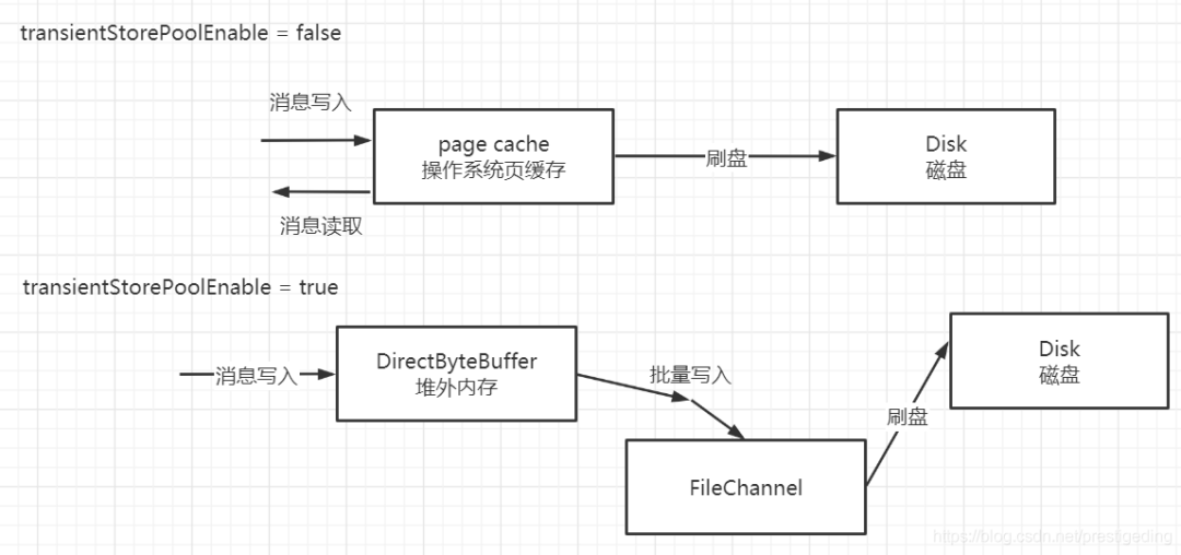 为什么 RocketMQ 不调用 transerTo 方法呢,个人觉得和 RocketMQ 需要在 Broker 组装 MQ 消息格式有关,需要从网络中解码请求,传输到堆内存,然后对消息进行加工,最终持久化到磁盘相关。