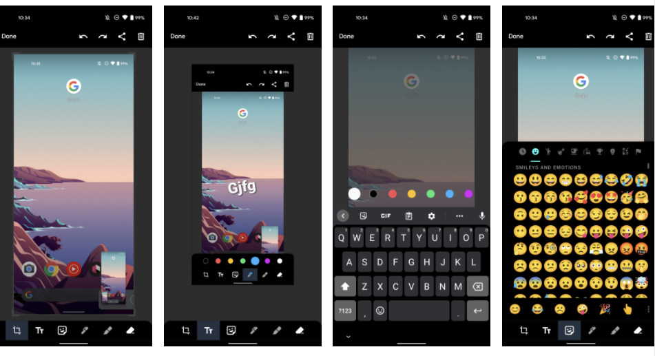同时,屏幕截图也增加了更多编辑工具,用户可以调整图片大小,轻按删除,最大的变化是添加各种大小的表情符号,在底部使用各种画笔、荧光工具和橡皮擦。