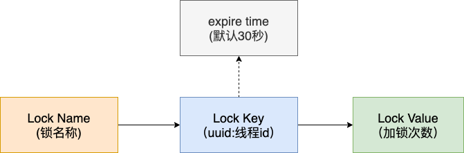 // 锁不存在,加锁成功,设置hash数据结构锁: 锁名 -> 加锁线程:id -> 加锁次数(1) // 锁存在且是本线程的锁 加锁次数增加:锁名 -> 加锁线程:id -> 加锁次数+1 // 锁存在且不是本线程的锁 加锁失败 返回锁剩余过期时间 return evalWriteAsync(getName(), LongCodec.INSTANCE, command, "if (redis.call('exists', KEYS[1]) == 0) then " + "redis.call('hincrby', KEYS[1], ARGV[2], 1); " + "redis.call('pexpire', KEYS[1], ARGV[1]); " + "return nil; " + "end; " + "if (redis.call('hexists', KEYS[1], ARGV[2]) == 1) then " + "redis.call('hincrby', KEYS[1], ARGV[2], 1); " + "redis.call('pexpire', KEYS[1], ARGV[1]); " + "return nil; " + "end; " + "return redis.call('pttl', KEYS[1]);", Collections.singletonList(getName()), internalLockLeaseTime, getLockName(threadId));}