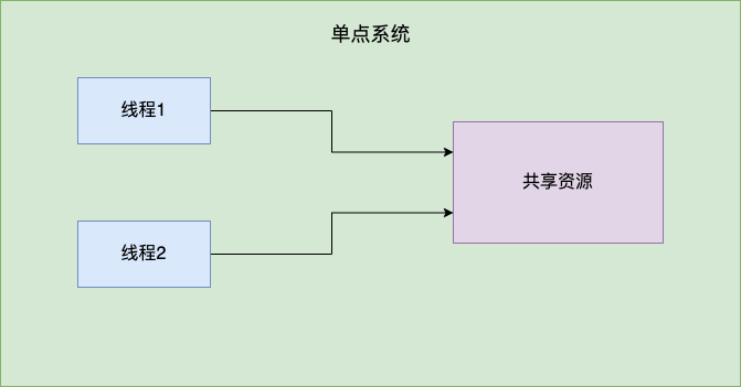 可以看出来,在单个 JVM 进程中,共享资源只是在同一进程下的不同线程共享,不管共享资源是实例变量、代码段、或者数据库的资源,所以我们可以通过单点下的原子性、有序性、可见性来保证共享资源的安全。