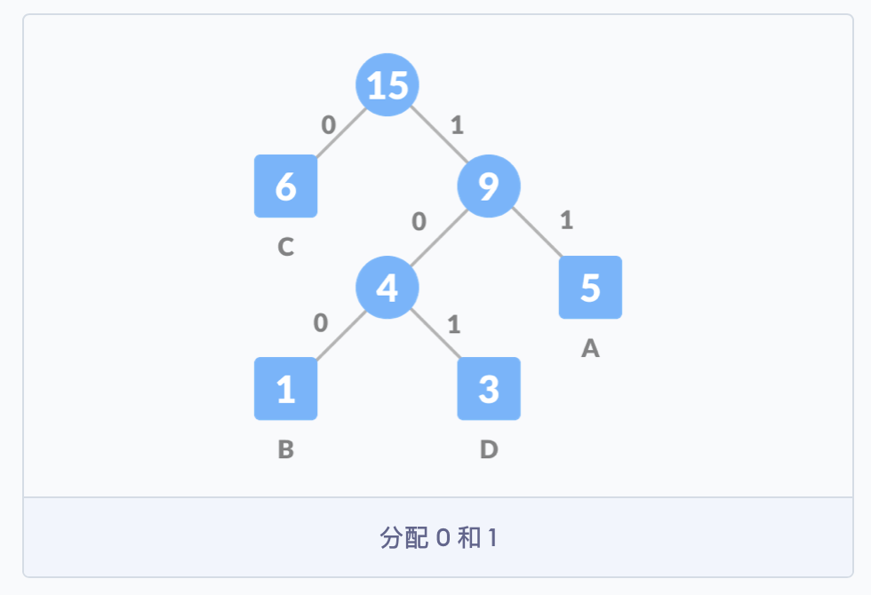 对于每个非叶子节点,将 0 分配给连接线的左侧,1 分配给连接线的右侧。