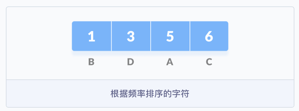B 出现 1 次,C 出现 6 次,A 出现 5 次,D 出现 3 次。