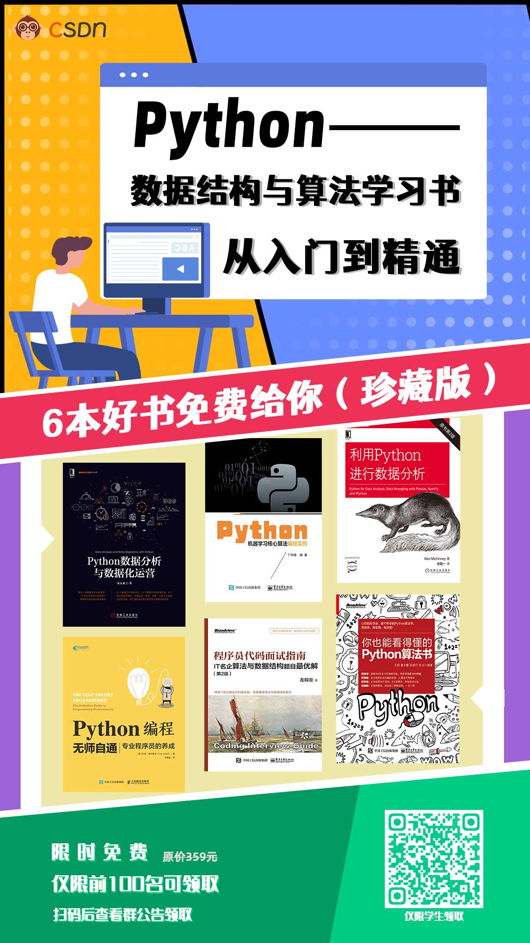 现在学算法还来得及吗?其实只要用心学,任何事情都不算晚。今天给大家分享89篇【Python数据结构与算法面试】相关精选学习资料,其中不仅详细讲解了数据结构的核心知识点,也同样包含了大量各大厂的面试原题。同时还有6本学习Python与算法必读好书,扫码即可获取,限额100名!