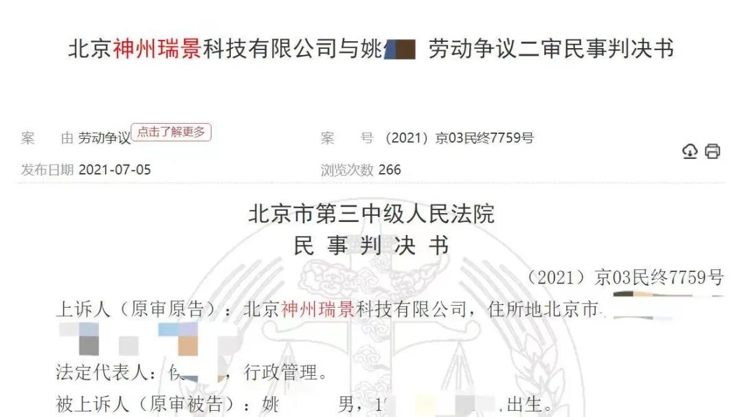 神州瑞景公司不服,诉至法院。一审败诉后,公司继续上诉,直到2021年6月,法院做出二审裁决,驳回了神州景瑞的上诉,并宣布此判决为终审判决,事情才得以告一段落。