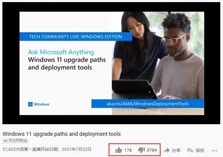 面对争议,微软于 7 月 21 日特地进行了一个名为“Windows 11 升级路径和部署工具”的主题直播。