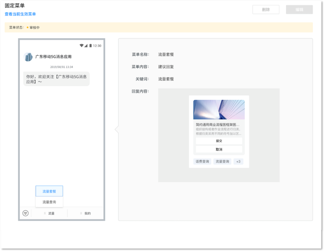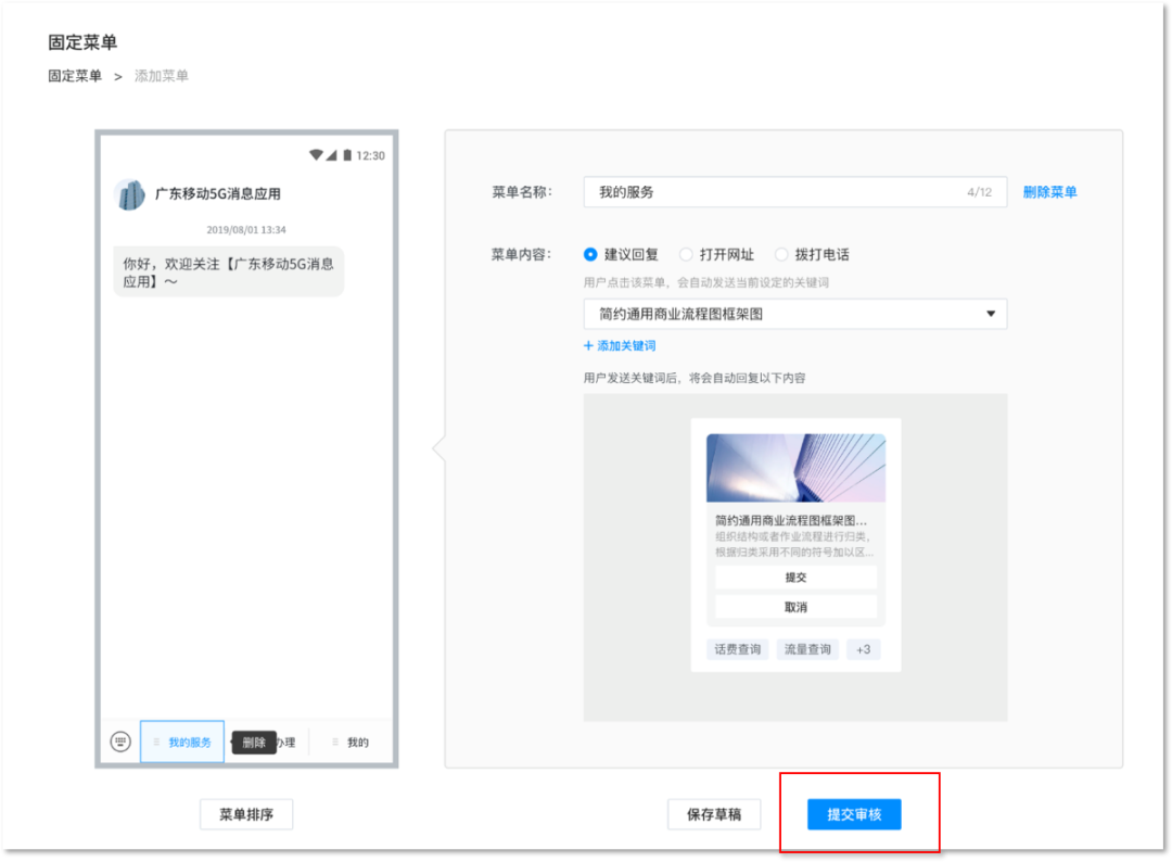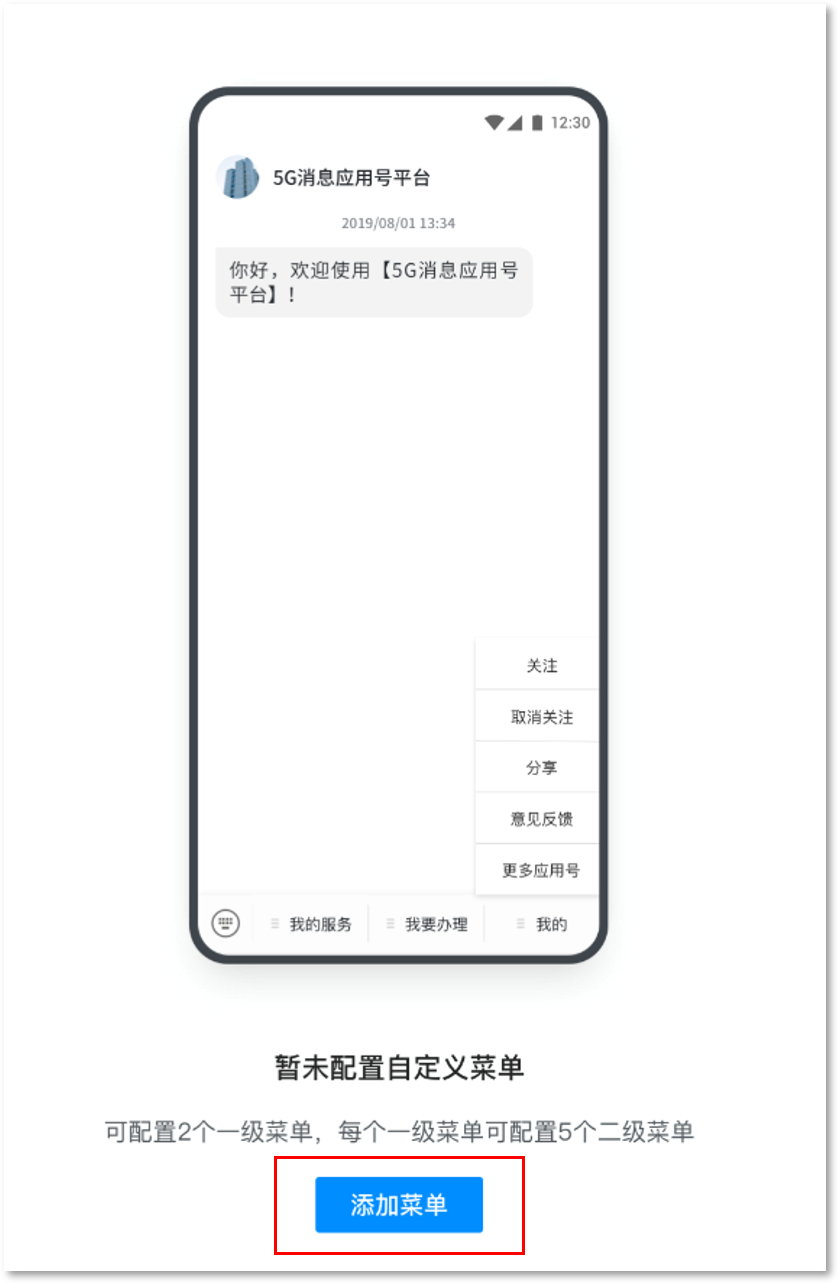 5G消息订阅号平台菜单配置
