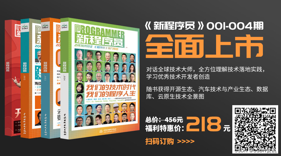 二十年前,《 程序员》创刊时,我们要全面关注软件人的成长。今天,我们依然初心不变:在一行行代码的背后,是一颗颗鲜活的开发者想要改变世界的雄心壮志。因此,《 新程序员 004》从 C++之父 Bjarne Stroustrup、C# 之父 Anders Hejlsberg、MySQL 之父 Michael "Monty" Widenius、PostgreSQL 全球开发组联合创始人 Bruce Momjian 等程序员祖师爷,到阿里巴巴副总裁贾扬清、指令集创始人兼董事长潘爱民、Vue.js 作者尤雨溪……48 位技术大咖,共创我们的程序人生、我们的技术时代。《 新程序员 004》已全面上市,欢迎订阅!