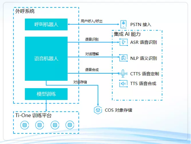 此外,针对需要自研 AI 模型解决的语料处理、语义/语境识别以及外呼策略优化等场景,腾讯云通过 Ti-One 训练平台,提供从数据接入、模型训练、模型管理到模型服务的全流程开发支持,实现 AI 推理加速,降低 AI 推理时延及资源支出。
