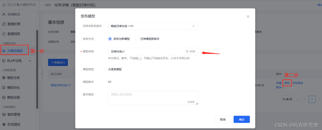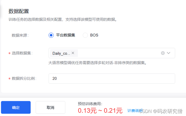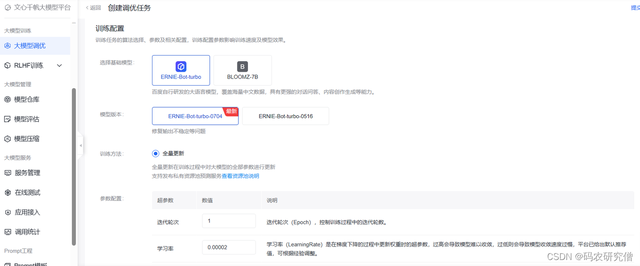 发布成功数据之后,通过平台提供的预训练大模型进行配置参数。创建任务并调整训练配置,其中各个参数都在可视化的界面中进行注释,这极大降低AI开发门槛。