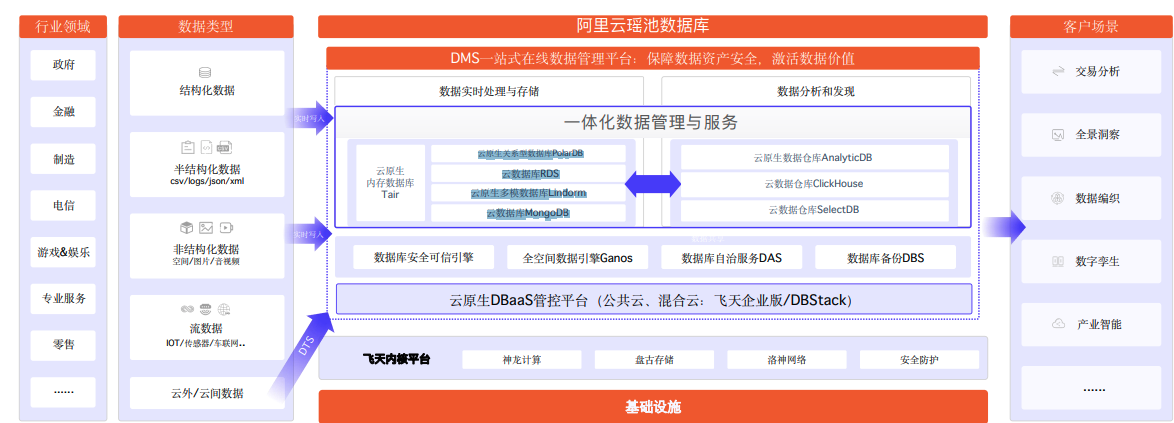 而企业级数据库在应对数字化转型中的挑战,特别从云数据库的角度出发,它与传统数据库存在四个关键差异:云原生化、平台化、一体化和智能化。在这一过程中,阿里云基于做深基础、做强核心、做精场景、做好体验理念构建了“瑶池数据库”,覆盖自研云原生关系型数据库 PolarDB、云数据库 RDS、云原生多模数据库 Lindorm 和云数据库 MongoDB,以及AnalyticDB、ClickHouse、SelectDB 等云数据仓库。
