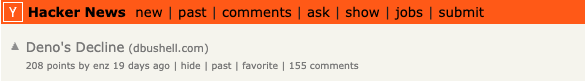 近日,Hacker News 上一篇名为《Deno’s Decline》(Deno 衰落)的文章引发了不少开发者的关注。