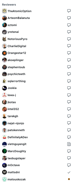 接连换人之后,这个 PR 之下,代码审查人员有长长的一列: