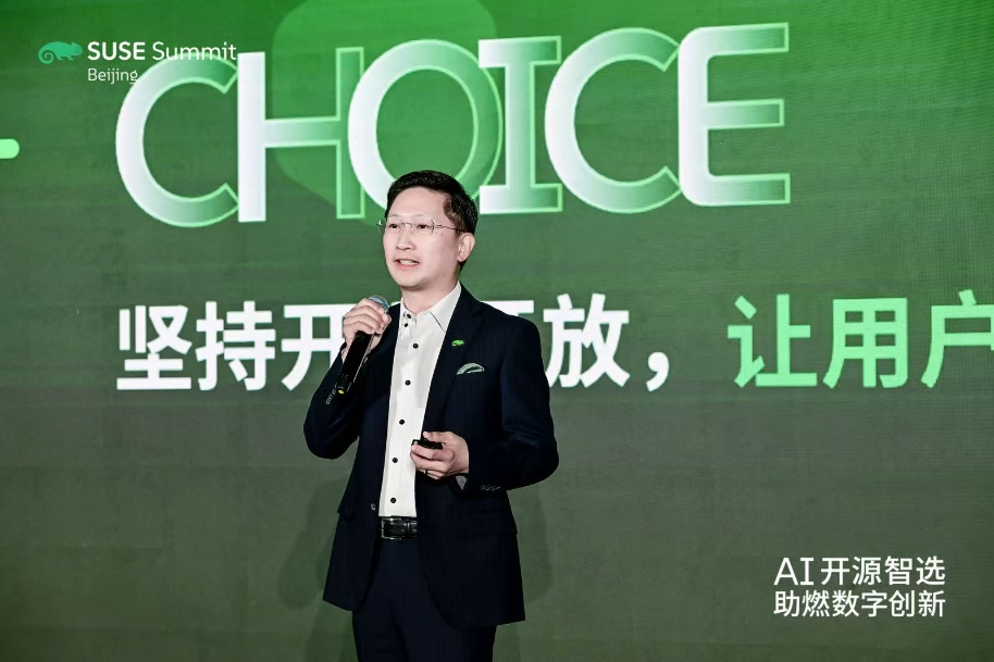 SUSE大中华区总裁陈毅威在今年的《选择的力量》主题演讲中,分享了SUSE如何通过服务体系重塑与技术体系深入创新,从而更好地赋予用户“自由选择的权利”。他指出,开源技术是推动各大行业创新的关键因素,SUSE坚持开源、开放的理念和持续不断的技术创新,将为中国各行各业创造高质量且普适的新质生产力提供关键路径。