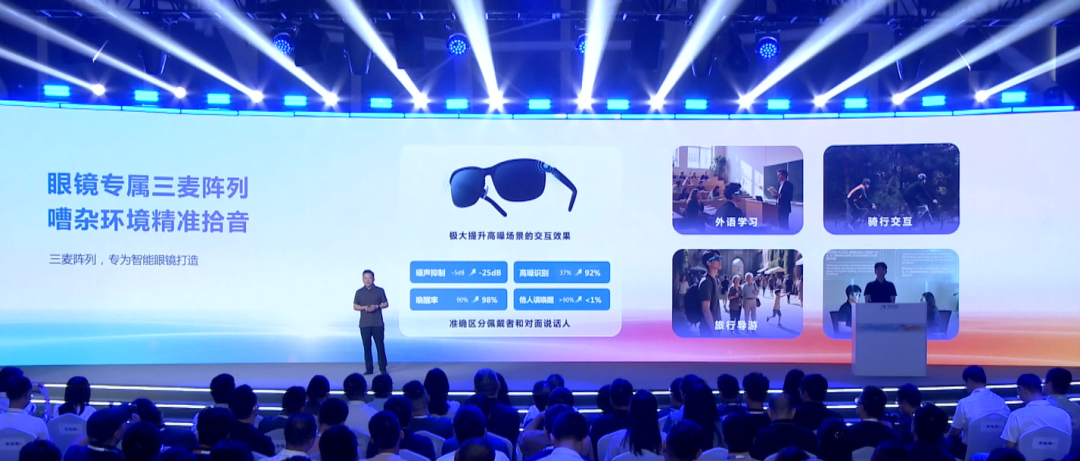 其中,为了推动智能眼镜真正走进现实,讯飞正式推出三麦阵列降噪技术。