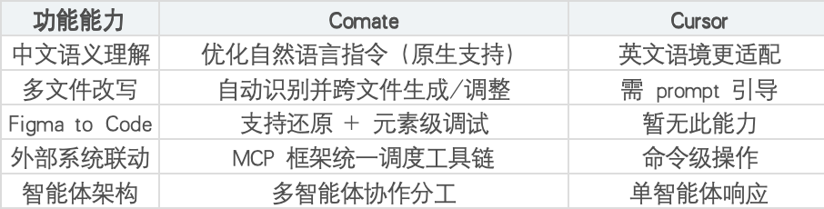 一句话总结:如果说 Cursor 更像“一个超强的英文 AI 助手”,那 Comate 则更像“一个更懂中文的国产智能工作站”。