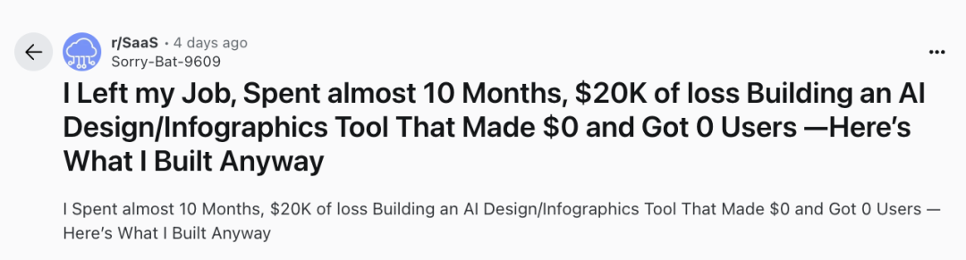 参考:https://www.reddit.com/r/SaaS/comments/1lg2zw7/i_left_my_job_spent_almost_10_months_20k_of_loss/
