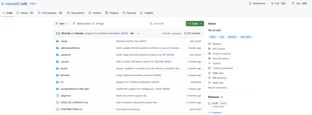 更值得一提的是,Edit 同样是以开源的方式发布,遵循 MIT 许可证。截至目前,该项目在 GitHub 上已经获得了 9.9k 个 Star,也引发了开发者圈的一波集体怀旧。