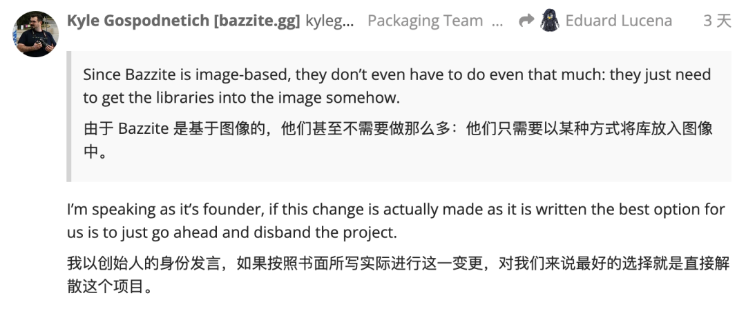 在进一步的讨论中,Kyle 甚至表示,如果变革按照计划进行,那么最好的选择就是解散 Bazzite 项目。