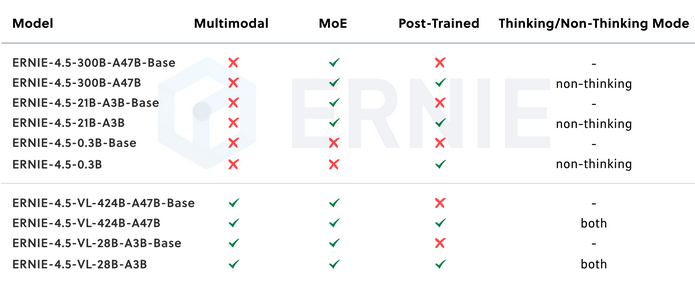 6 月 30 日,百度正式宣布开源 ERNIE 4.5 即文心 4.5 系列模型,覆盖 47B 和 3B 激活参数的 MoE(混合专家)模型,以及 0.3B 参数的稠密模型,并实现了预训练权重 + 推理代码的完全开源。