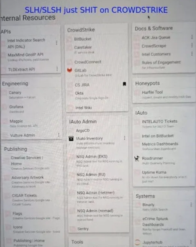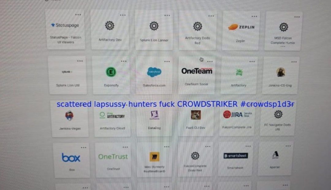 要论事情究竟是为何以及如何发生的,一切的根源还要从上周四谈起。当时一个名为 Scattered Lapsus$ Hunters 的黑客组织在 Telegram 频道上贴出几张“猛料”截图,声称他们成功获取了 CrowdStrike 内部环境的访问权限。