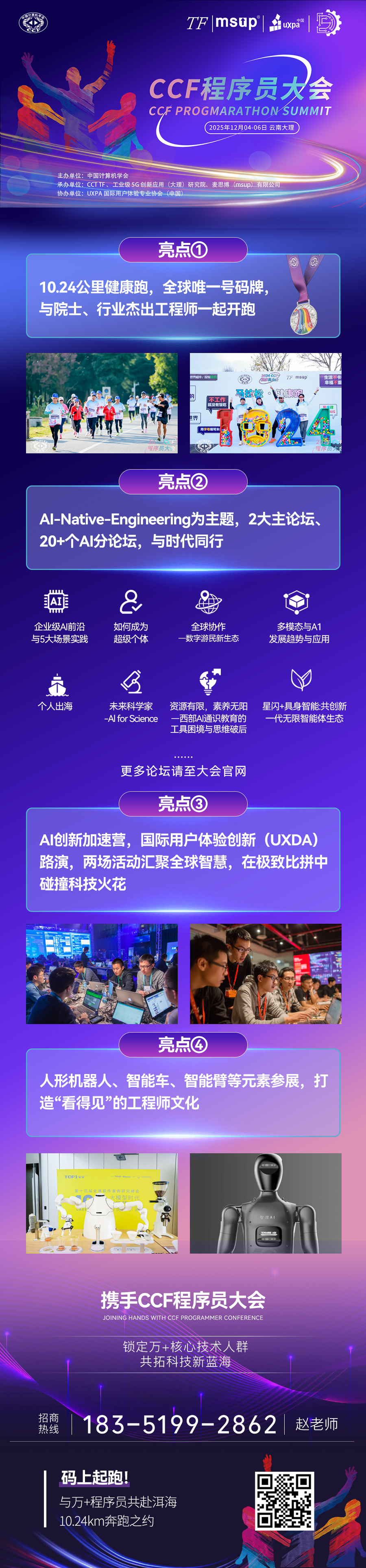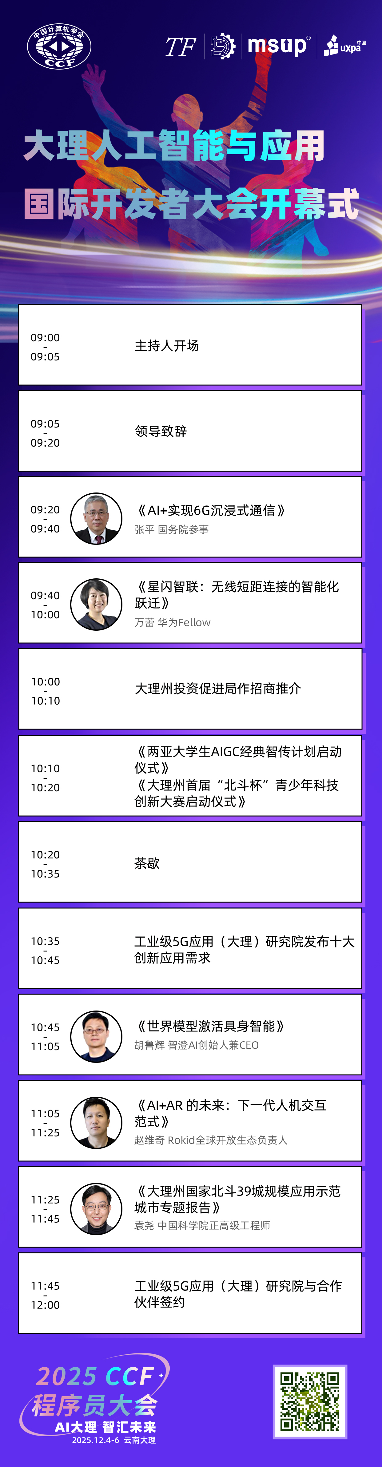 导语:距2025 CCF程序员大会仅剩1天,“参会指南”送您一份详细攻略,请参会嘉宾仔细阅读并提前做好相关准备。愿大家在大理参会期间,获得最佳的参会体验!12.4-12.6,不见不散~