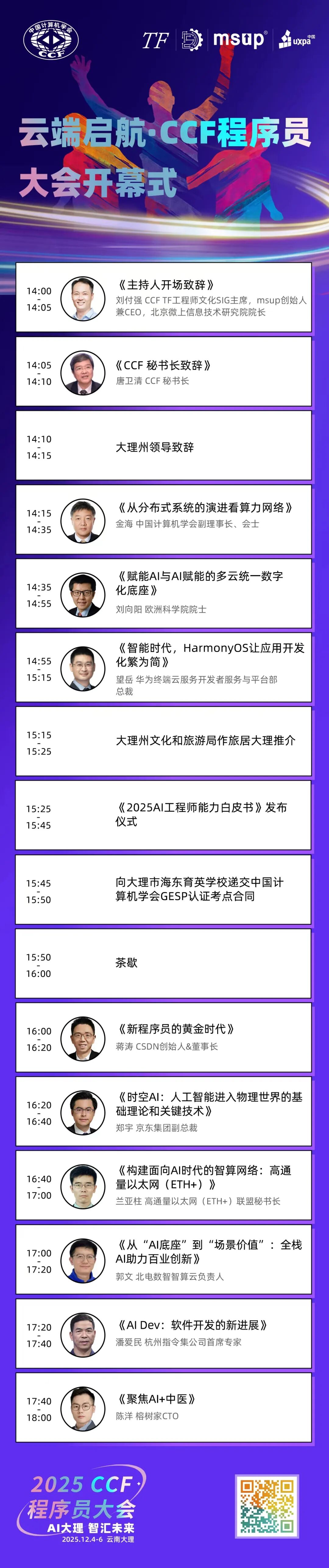 2025 CCF程序员大会即将于12月4日~6日在云南大理隆重举行。这份参会指南请收好!
