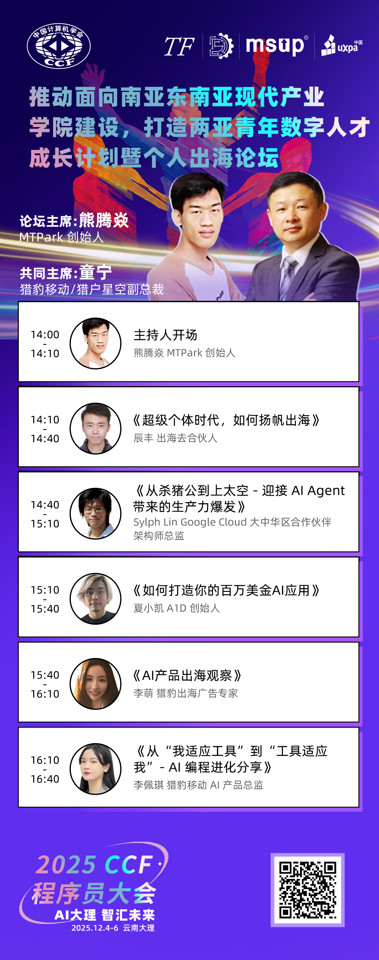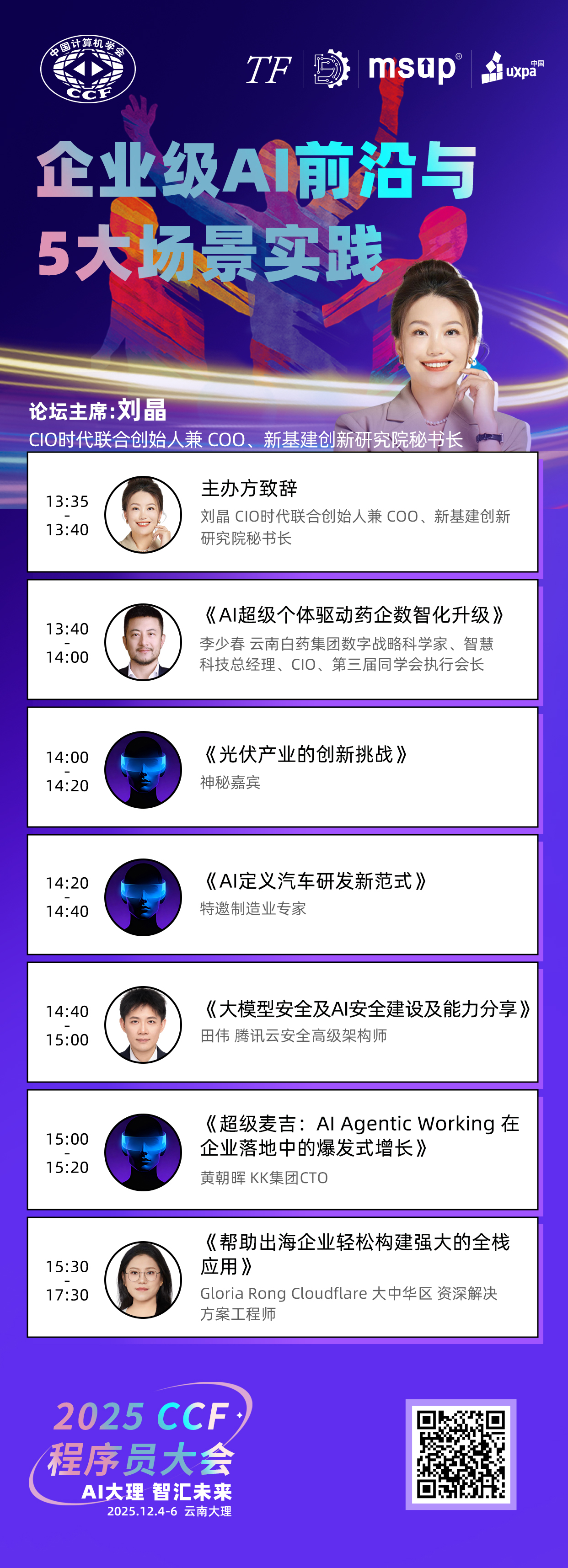 大会以 “AI赋能・生态共荣・未来可期” 为核心,精心打造20个特色分会场,覆盖AI前沿实践、工具应用、人才培养、全球协作等多元领域,无论是深耕技术多年的资深开发者,还是初入行业的新锐程序员,都能在这里找到属于自己的技术航向。