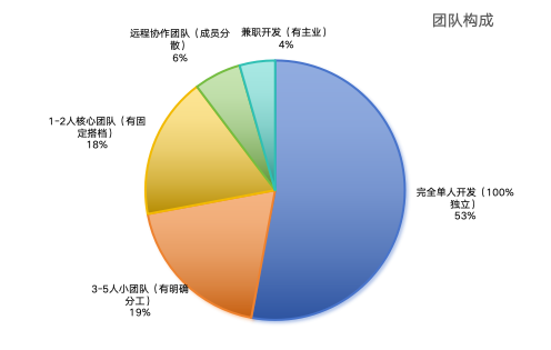 团队规模上,52.94%完全单人开发,19.12%为3-5人小团队,17.65%为1-2人核心团队。单人作战仍是主流模式。