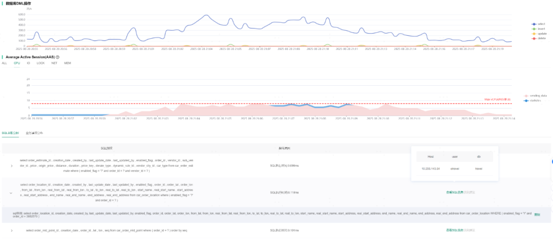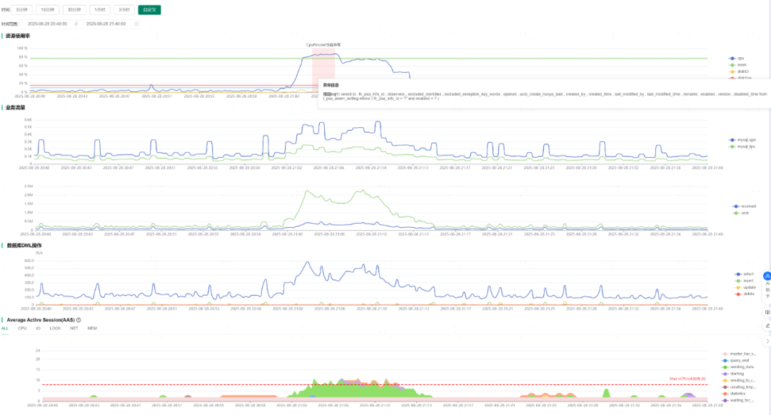 AAS数量变化趋势与CPU飙高时间段完全吻合