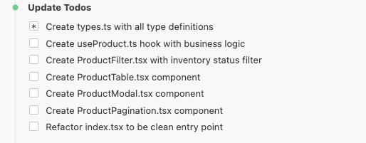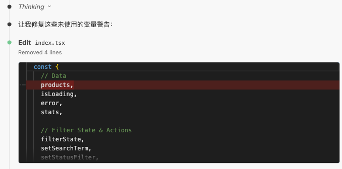 M2.1 的操作相当老练。系统没有机械地按行数切割文件,而是玩起了 Type First 策略。先提取 TypeScript 类型定义,再把散落在各处的十余个状态收敛进自定义 Hook,最后才把 UI 剥离出去。这种先理清脉络再动刀子的方式,直接避开了重构最容易翻车的类型丢失坑。