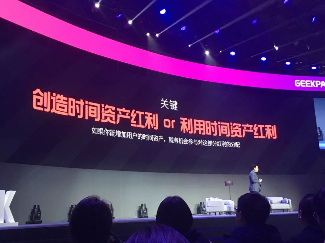 极客公园创始人张鹏谈到:“流量红利和场景红利已经越来越少,接下来竞争的焦点应该是时间资产红利。而其中的关键是,创造并利用时间资产红利。如果能增加用户的时间,就有机会参与对这部分红利的分配。”