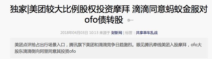 如果站在腾讯的立场上,对于两个“干儿子”滴滴和美团,我们是否也可以这样理解:无论是美团“选择”摩拜,还是滴滴“选择” or “抛弃” ofo,都不会因为腾讯的立场而改变。