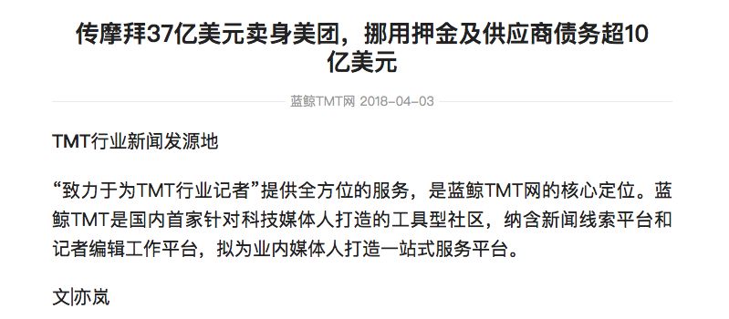 实际上,近期对手ofo也因为资金链断裂问题,向阿里抵债借得17.7亿元救命钱而备受质疑。然而,不到一个月,摩拜被曝出同样问题。
