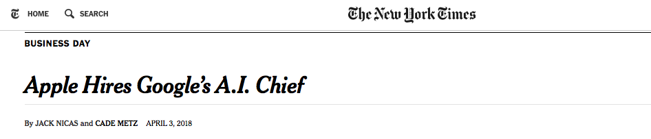 近两日,Google宣布拆解搜索与人工智能部门,其负责人约翰·詹南德雷亚离职加盟苹果,不禁让外界开始重新审视这些在人工智能领域筹谋多年的科技巨头。