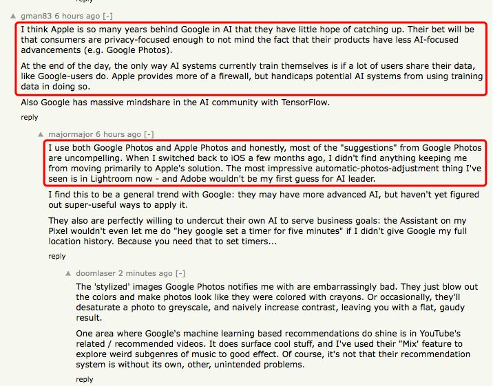 实际上,出于保护用户隐私的目的,苹果干掉了普通的信息收集引擎,从而确保用户数据不被其他人滥用。要知道,大量的数据可以极大改善神经网络的学习能力。这种保护使用其设备和在线服务的用户数据收集的强硬立场,从用户意识形态角度是值得称赞的,但却不利于团队通过神经网络构建服务,结果在外界眼中,苹果在人工智能领域无法与其他科技巨头齐头并进。