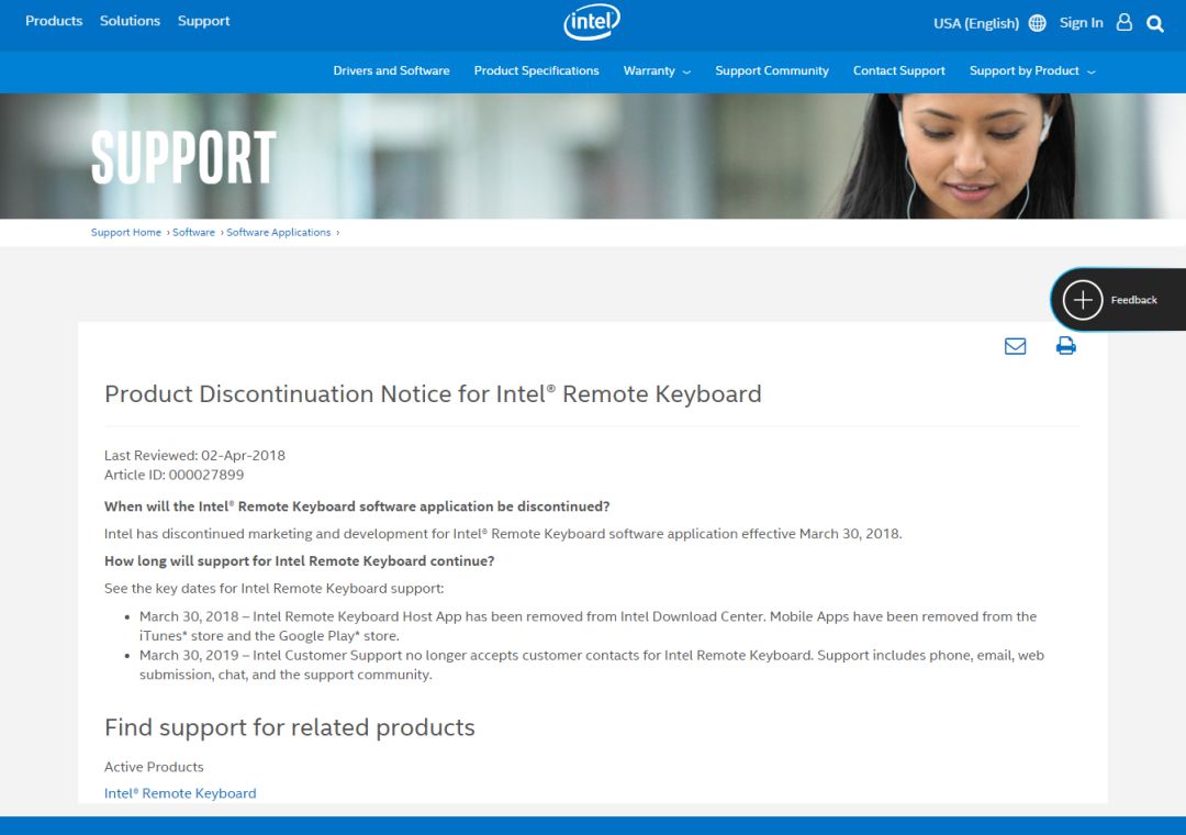 Intel停用远程键盘App
